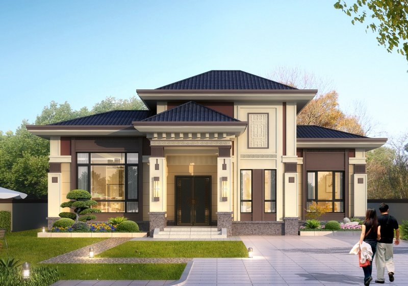 图纸介绍:本方案三个户型,B、C户型介绍及户型展示往下拉。欧式二层别墅设计图,带阳光房设计,时尚美观还很实用,别墅外型设计是现在非常流行的简欧风格, 质朴,简约,优雅和谐,非常现代时尚。外墙黄色、米黄色,棕色喷漆巧妙搭配,色泽自然,富有质感,瞬间凸显建筑的档次,咖色线条和窗套进行装饰,和米黄色外墙形成强烈的对比,和谐美观;屋顶坡屋顶采用蓝色琉璃瓦,端庄大气,阳光下熠熠生辉,非常好看;方形罗马柱更有线条和层次感,设计壁灯,彰显生活档次。好看又实惠。