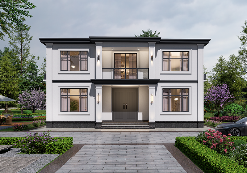 平顶二层别墅设计图,进深不到8米,适合小进深宅基地