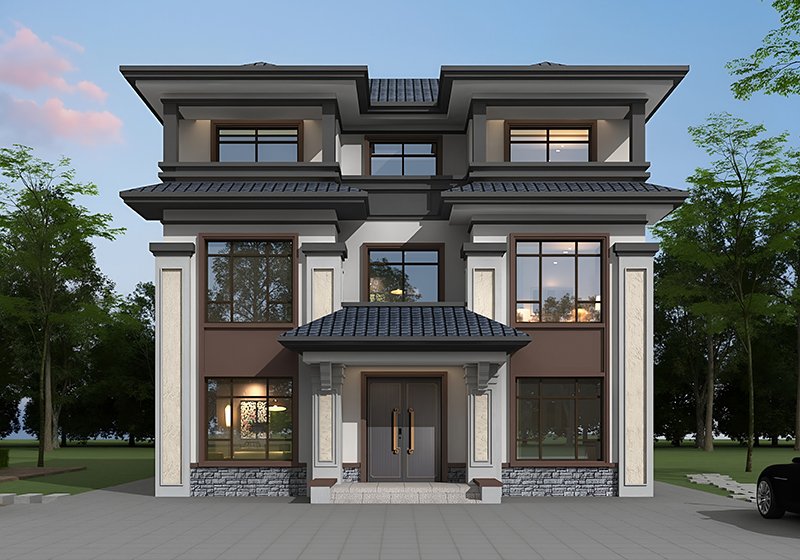 豪华大气三层农村自建房设计图,经典大气,百看不厌,新中式风格