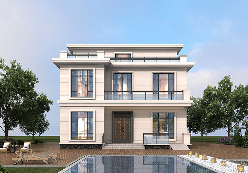 12米乘11米三层现代风自建房设计图,平屋顶设计