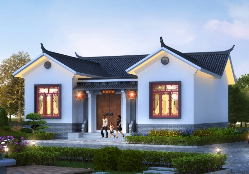 新农村中式一层三合院效果图及全套设计图,喜欢合院的有福了